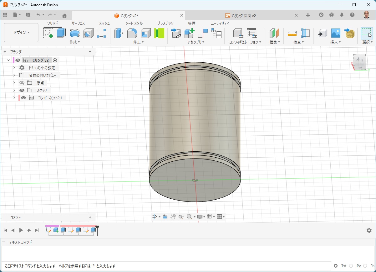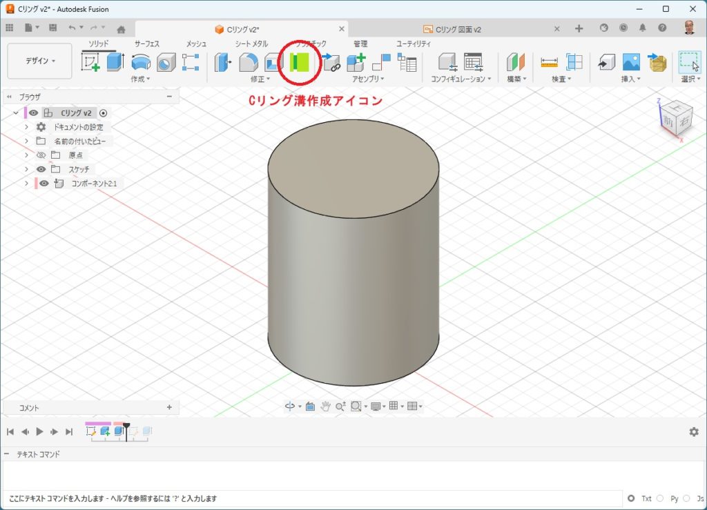 修正ツールバー内の、Cリング溝作成アイコンをクリック。