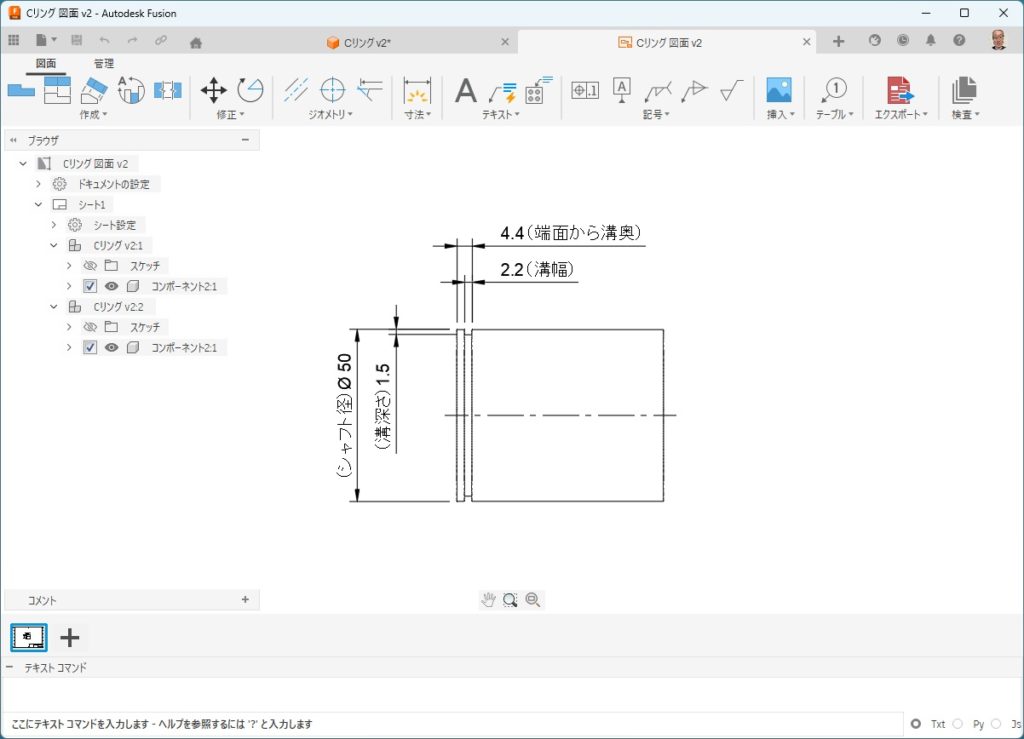 作成したアドインで、下のシャフトにCリング溝を掘る手順です。